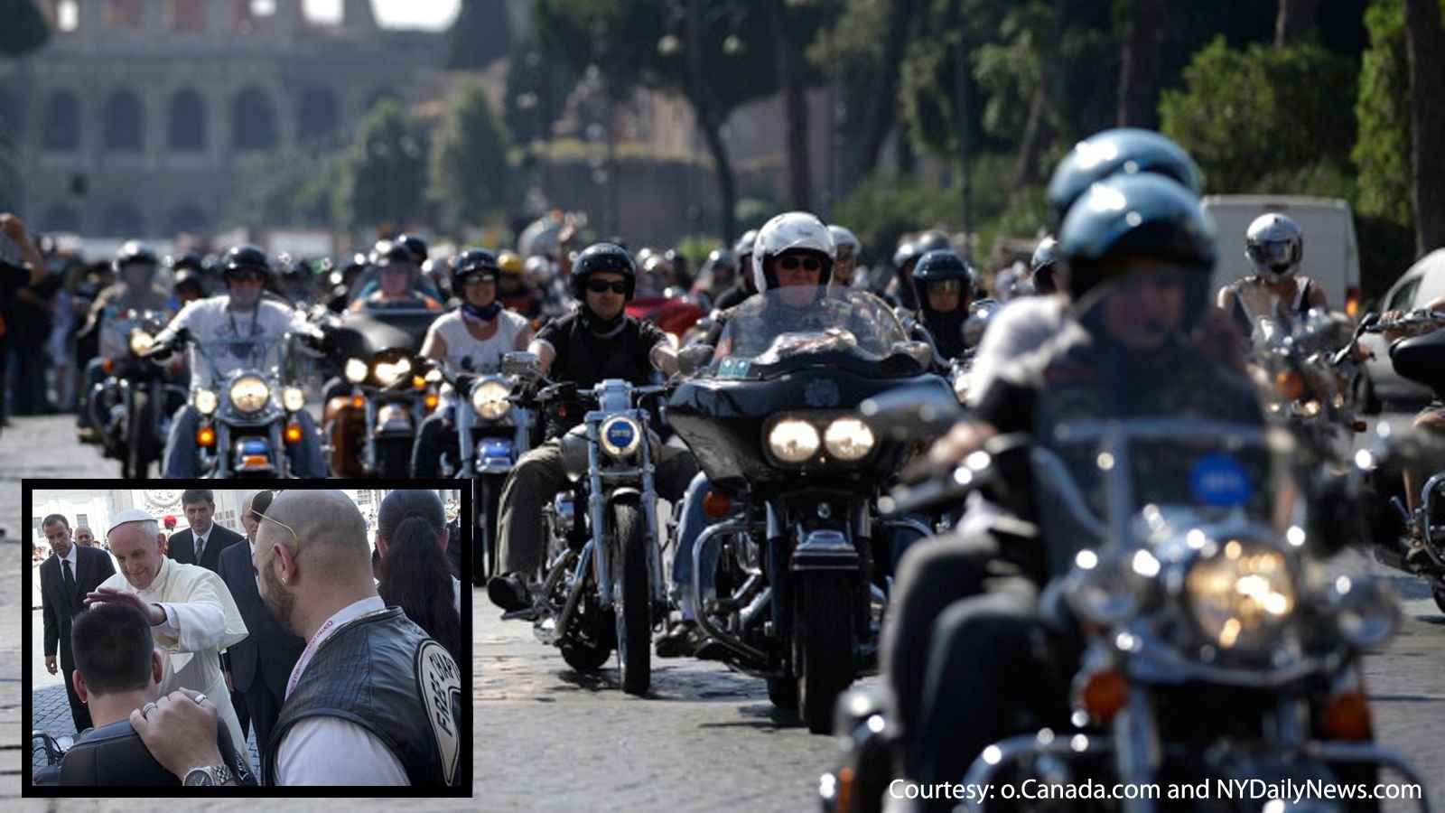 While also celebrating the 110th anniversary in Rome, hundreds of Harley riders rode into St. Peter's Square and got blessed by Pope Francis. Pope Francis was given two Harley-Davidsons, and while one was sold in auction, the other will stay in the Vatican's museum.