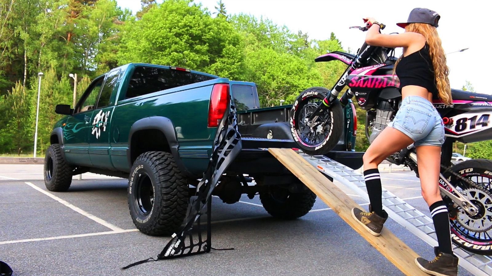 Riding up a ramp is the easiest loading method, but it can be a bit nerve-wracking the first time. Look where you want to go, and then ride up in a smooth and deliberate motion. Feather the clutch and brake gently to avoid diving the front end once on the truck bed. Also, check the load rating of the tailgate, or better yet, take it off.