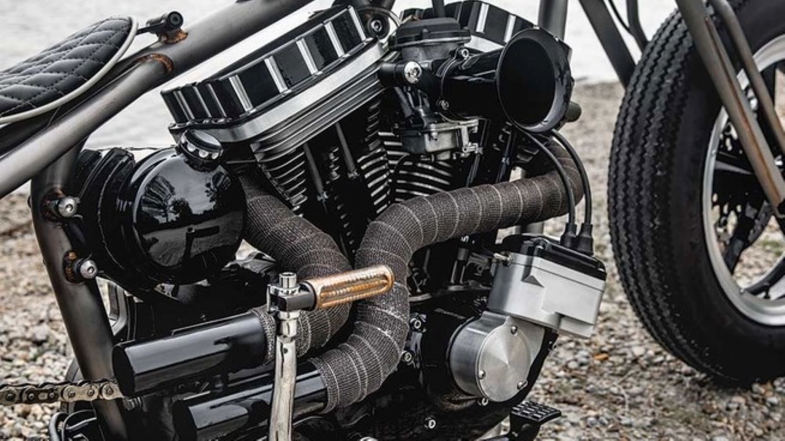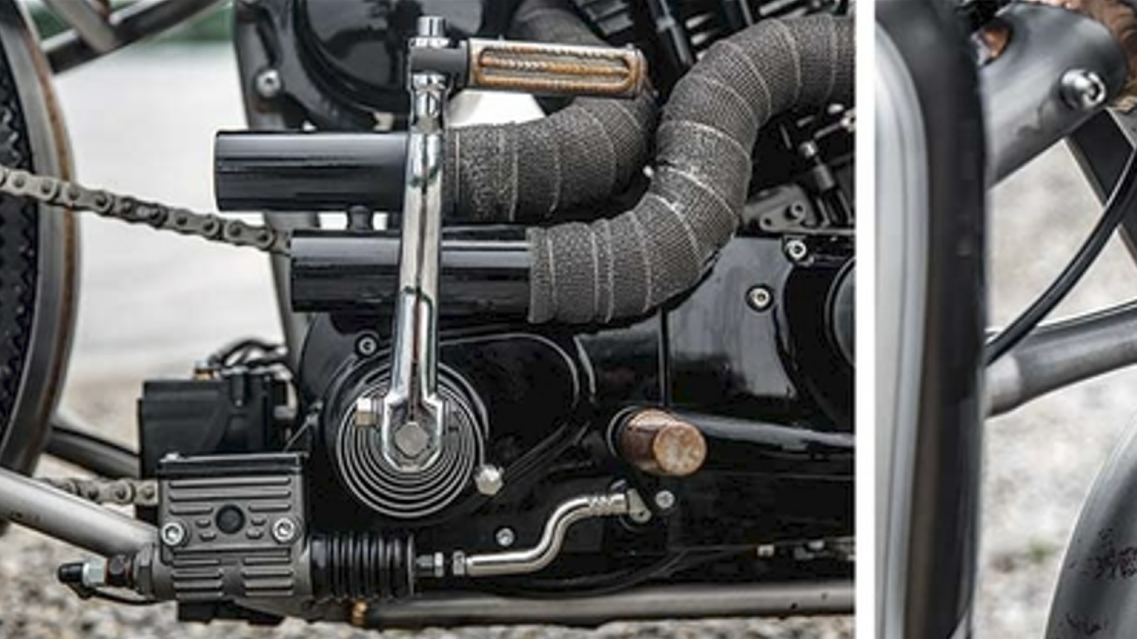 The 883 cubic-inch mill has been treated to Andrews cams and a carb from CV, as well as that aforementioned custom exhaust. It sends power to the rear wheel via a six-speed Baker gearbox and a chain drive, and given how light this rig is, we imagine that it goes pretty well.