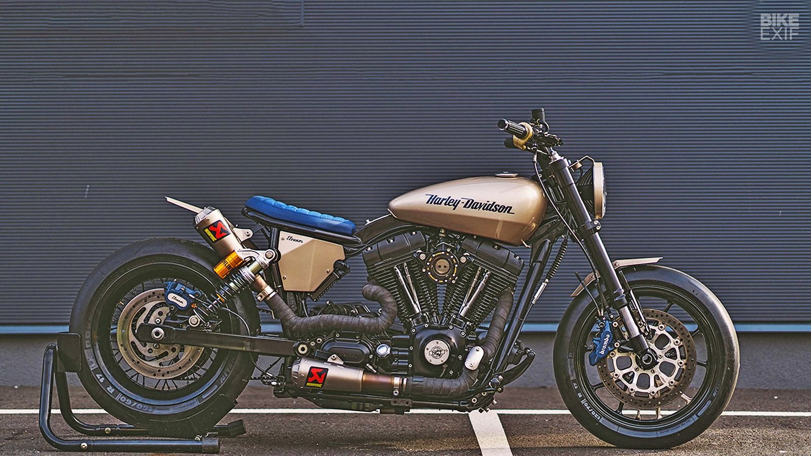 “We wanted to give the Harley a completely new look,” says shop boss David Widmann, “and move away from the usual styles and color schemes.”