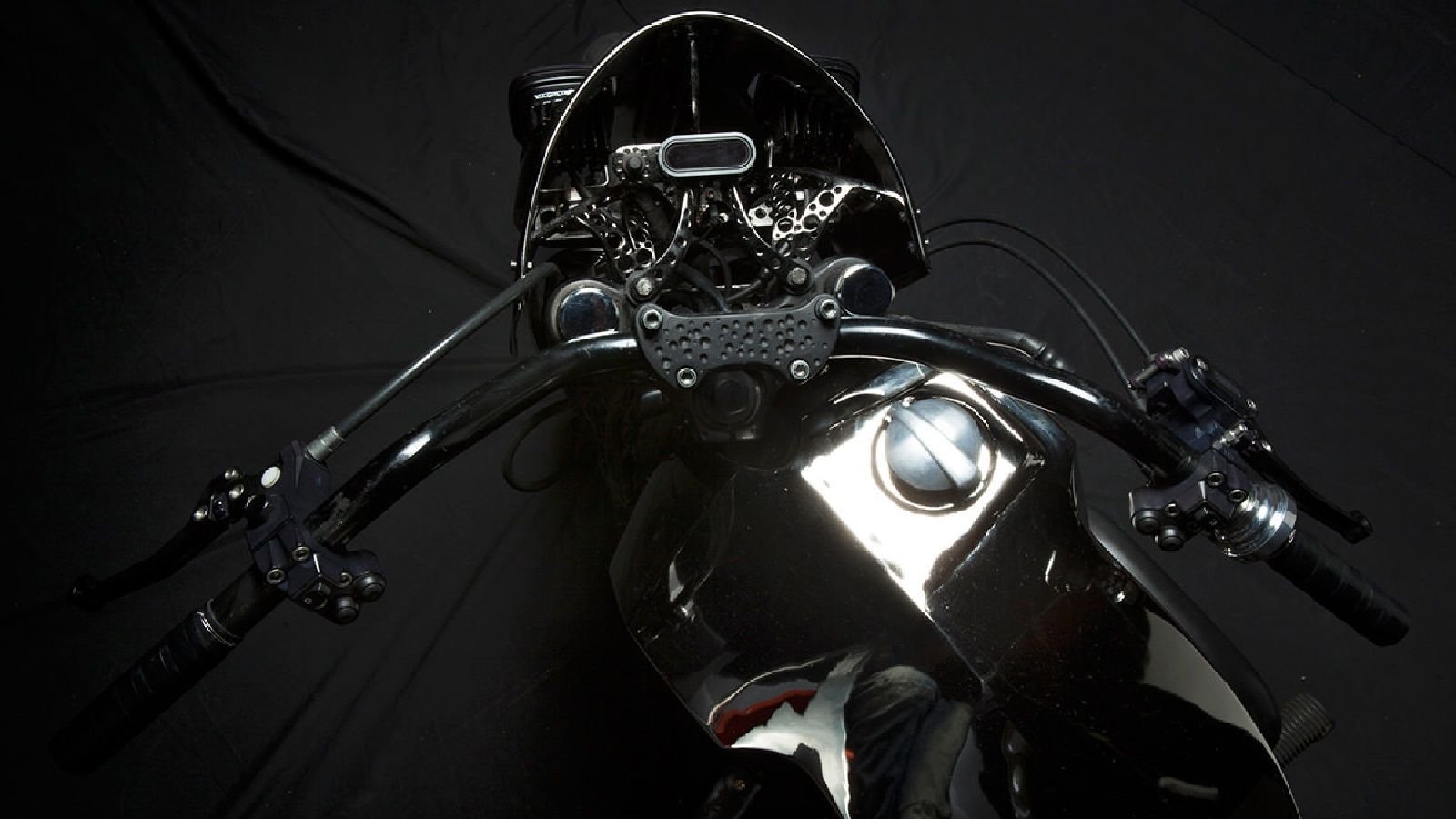 The handmade touches continue throughout the rest of the bodywork with the hunchback-like fuel tank with its sharp creases, simple half-radius rear fender, stitched leather seat, and the drilled and dimpled brackets securing the headlight and gauge in place. There are simple features that may go unnoticed unless viewing the bike up close, such as the leatherwork hand grips, vintage flip fuel cap or the small buttons that clip the seat pad in place. With the bodywork being completely polished, the bike straddles the line of being a modern creation while having a retro beater air that is ready for urban assault.