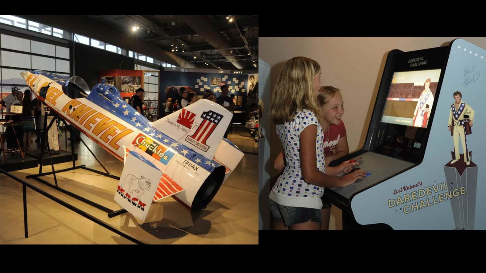 One of my personal favorites is the Evel Video Games. Here is where Evel Knievel’s Daredevil Challenge is calling for you to come and be the daredevil you and your kids always wanted to be. The youngsters can try out their skills and see how far their luck goes with the interactive arcade. Share your love of this classic hero with the kids. Think they may want to jump big rigs or shark tanks one day? Let them try it out at the H-D Museum before things get too real (flashbacks to roof jumping).