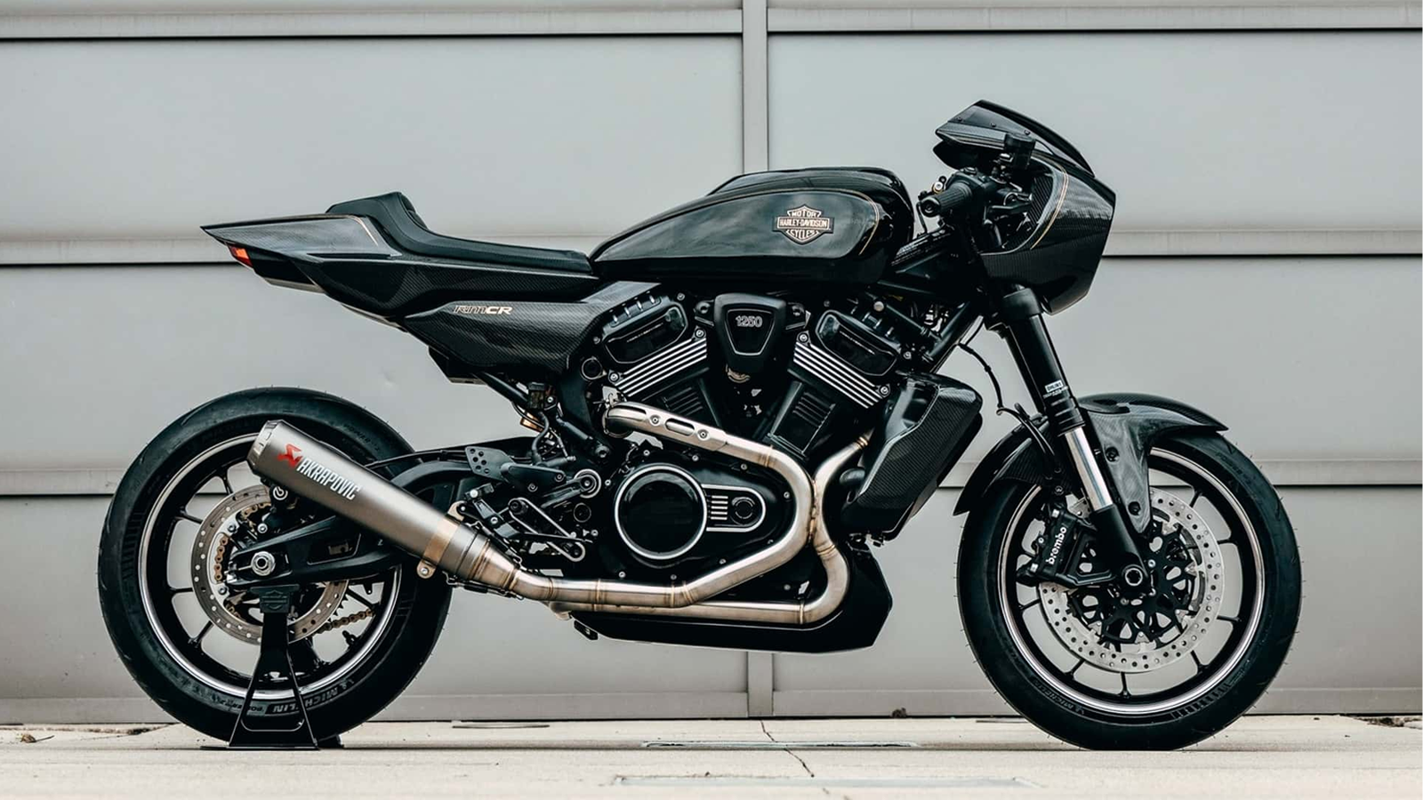 At the center of the RMCR is Harley’s 1,250cc Revolution Max V-twin, a liquid-cooled, double overhead camshaft engine that first appeared in the Harley-Davidson Pan America 1250 in 2021. For the concept, the engine is housed in what Harley describes as a custom chassis shaped with performance in mind. Visually, there are strong hints of Pan America DNA in the frame and component layout, though the RMCR’s geometry and bodywork are purpose-built for a café racer stance. A custom exhaust, described as a performance-focused system, sits beneath carbon fiber bodywork.