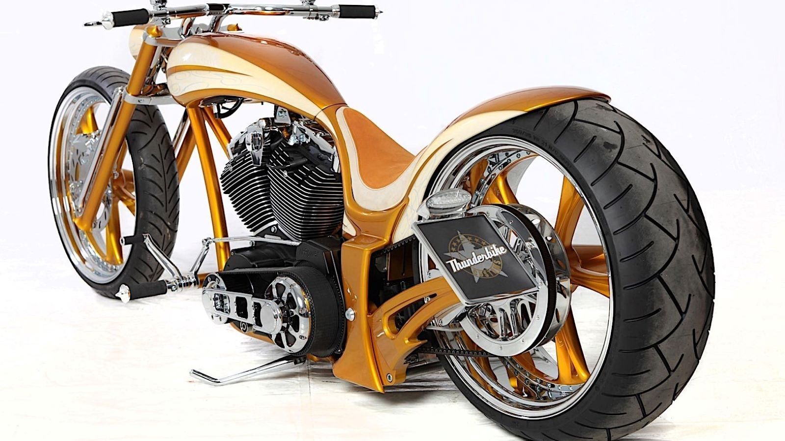 Add it all up, and you've got a pretty sweet looking ride that looks like it could have rolled out of a custom bike shop. But in reality, it's been put together with a host of Thunderbike off-the-shelf parts. And of course, if you don't care for gold, you can paint it whatever color you like.