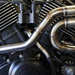 Both wheels also have an interesting and unique story to tell. Up front, you'll find a basic, stock, 9-spoke Harley mag. The back wheel is actually the front wheel from a V-Rod that fits thanks to a custom hub and quick-change adaptor.