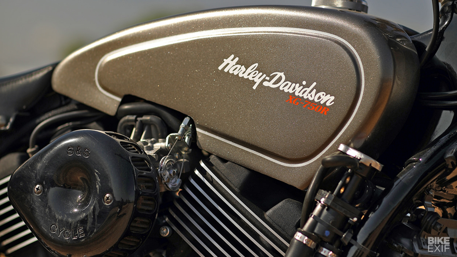 That exhaust mod is also a bit of a tribute to the XR1000, which also featured left-side pipe placement. As is the slate grey color choice, which was used on many of those same bikes from that era. Jones has had to experiment with three different heat shields, however, just to keep his legs from getting burnt.