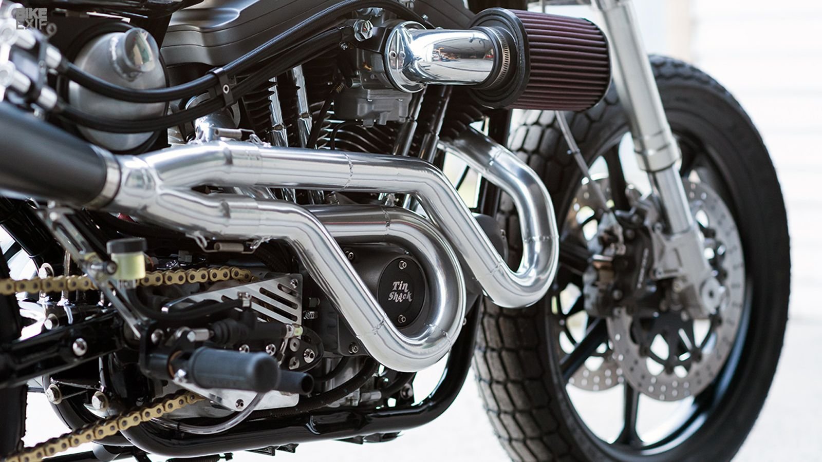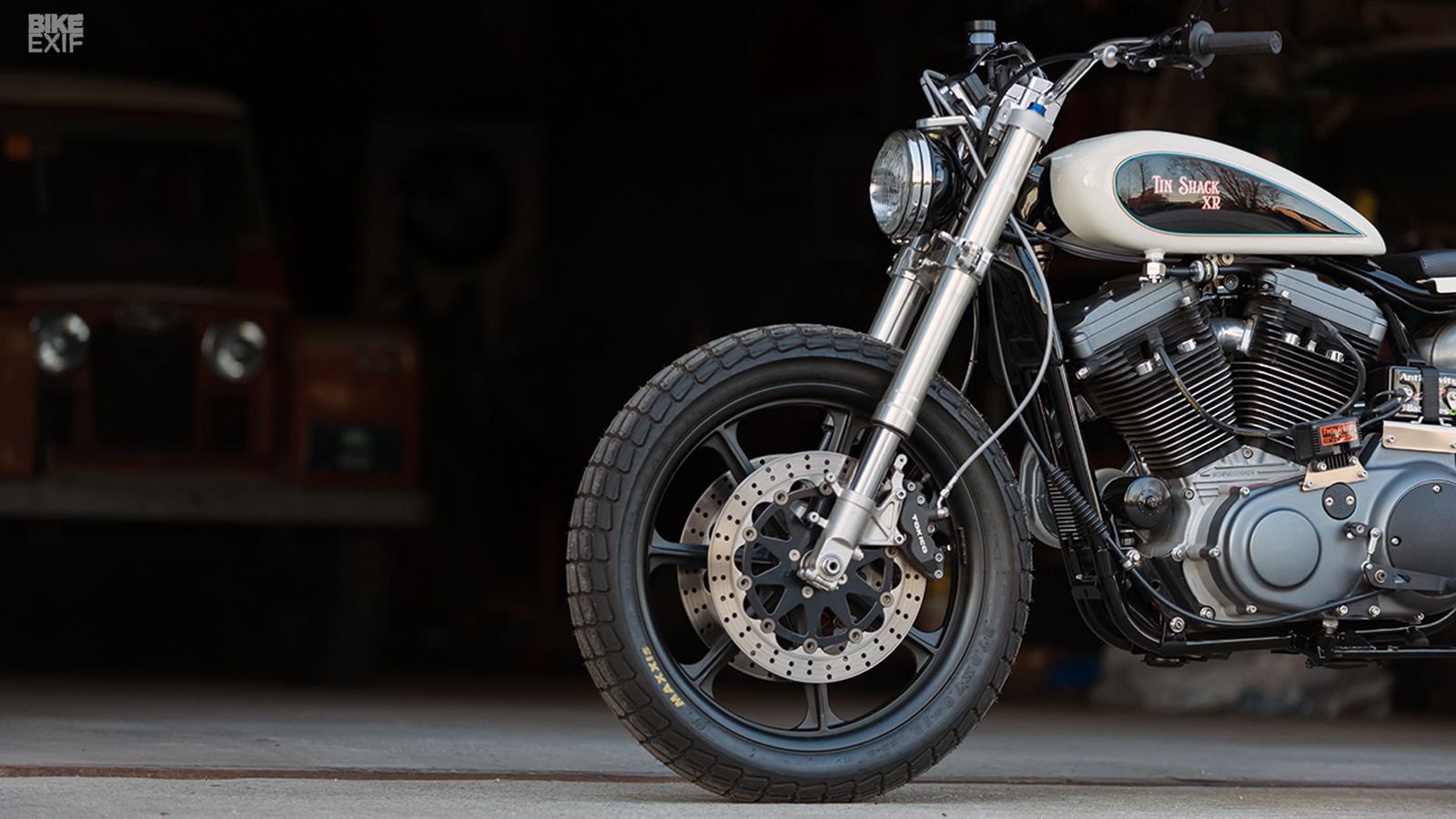 In the quiet lakeside town of Shelburne, in Vermont, there's an aircraft hanger full to the brim with Land Rovers and some custom motorcycles. This is Colby Morris' home, and this writer can't say he's not the tiniest bit jealous. Morris owns Tin Shack Restoration, a company which specializes in restoring vintage Land Rovers. Between Land Rover restorations Morris also builds custom motorcycles, and this is his latest creation. It's something which looks set to dominate the mountain roads of Vermont.