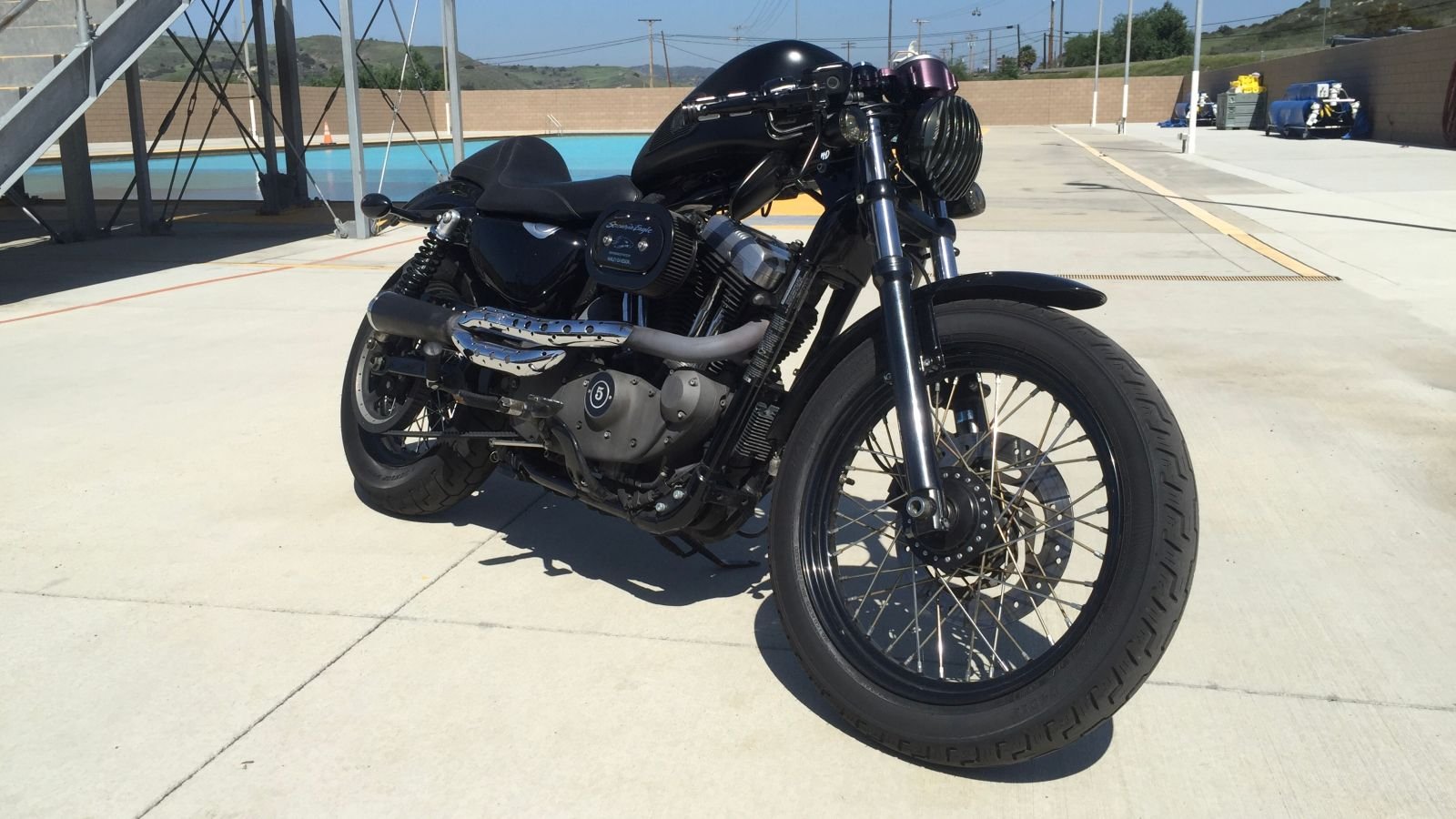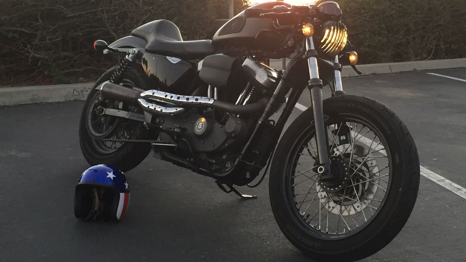 This 2009 Harley-Davidson XL1200N Nightster started life as a soft, everyday cruiser and became a dark, aggressive, corner-friendly cafe racer.