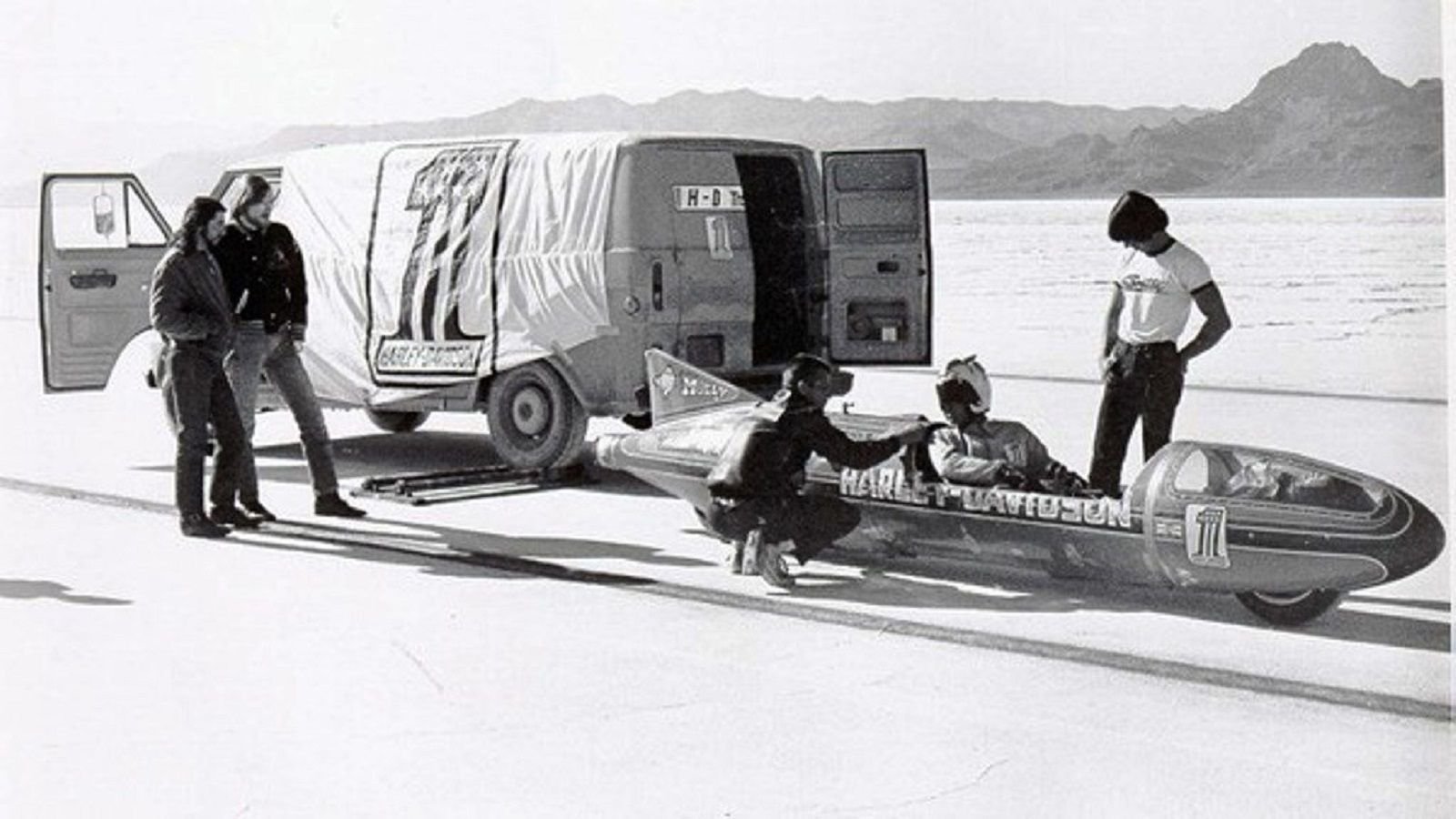 With an 89 cubic inch motor and a Sportster drive train burning 70% nitro-methane this 1970 orange bullet took Bonneville by storm. Crowned the "fastest motorcycle on the planet" and holding this title for 5 years, this purpose-built Harley-Davidson's speedometer settled at 265 mph on its best run.